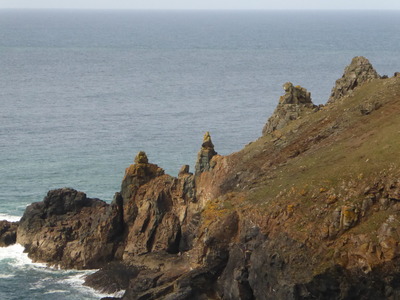 Just before Killigerran Head, we had a view down to a little beach with 10 or 11 seals basking in the sun. They were close enough to hear!